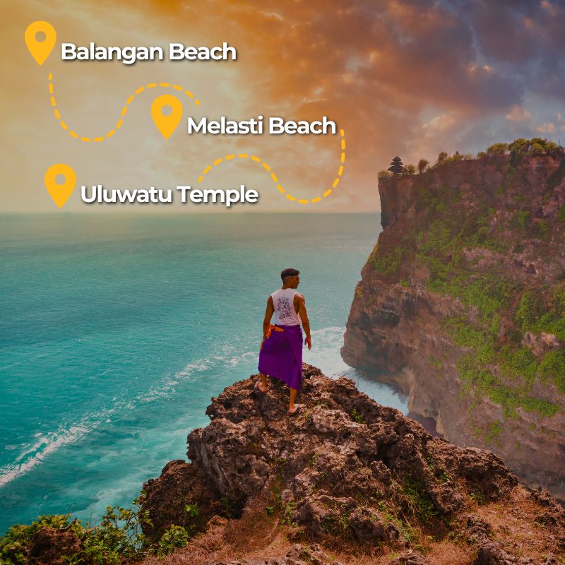 Discover Bali’s beauty at Melasti Beach, Balangan Beach, and Uluwatu Temple—pristine sands, stunning cliffs, epic sunsets, and rich culture all in one unforgettable coastal adventure!