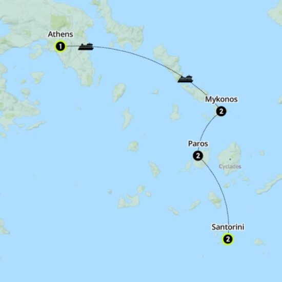 Hit up magical Mykonos, perky Paros and saucy Santorini in this sun-soaked 8-day Greek island extravaganza. Marvel at the natural and human-made architecture, from coves to cobblestones. Feast on feta and perfect your moves as you experience the legendary local nightlife. Villages and volcanoes await, and you’ll have plenty of time to explore Greece’s most famous islands.