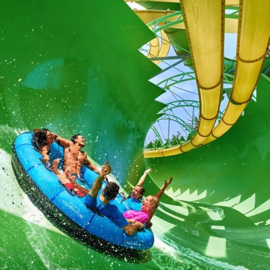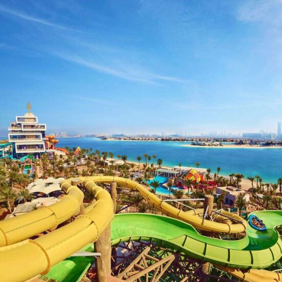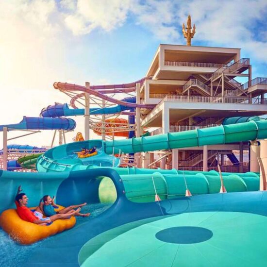 Conquer the world’s largest waterpark! Start exploring the world’s largest waterpark and get your pulse racing with over 105 record-breaking slides, attractions and experiences, make your way through the Raging Rapids, and relax on 1km of private beach.