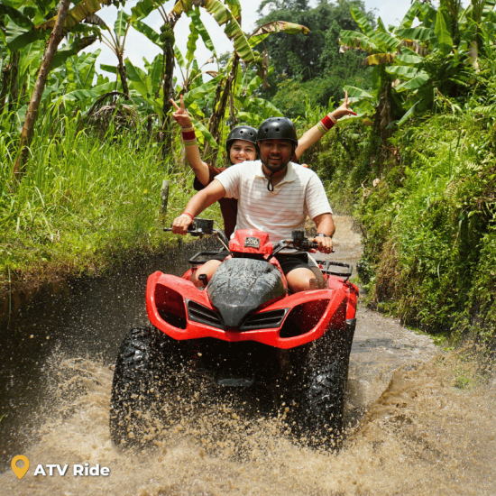 Get ready for an adrenaline-pumping ATV ride through Bali’s rugged terrains. The ATV adventure takes you through rice fields, muddy trails, rivers, forest paths, and even a hidden cave and village temple. This is your chance to discover Ubud’s wild side in the most thrilling way – are you ready to get muddy with us