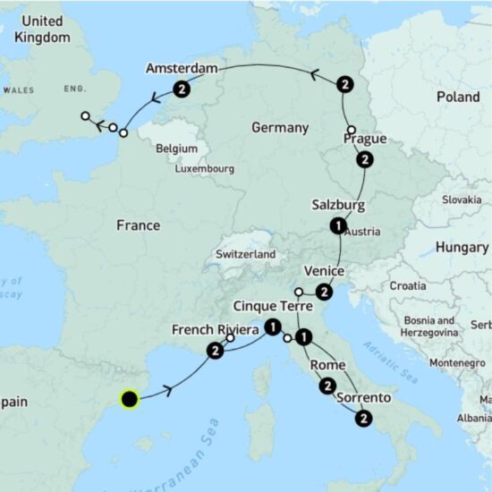 Spain, France, Monaco, Italy, Vatican City, Austria, Czech Republic, Germany, Netherlands, England