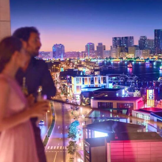 Just next to the Dubai Creek, Canopy by Hilton Dubai Al Seef sits just steps away from the boardwalk surrounded by shops, restaurants and the Museum of Illusions with the Al Fahidi district right around the corner. Explore the area with free bike rentals & buggy services. Family amenities include connecting & family rooms, film screenings, kids’ menus, and more! A rooftop pool, spa, riverside lounge, and complimentary evening tastings complete your perfect Dubai stay!
