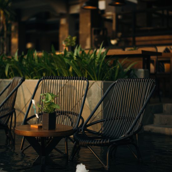 Surrounded by lush tropical gardens, frangipani trees, and swaying coconut palms, the central swimming pool is the heart of the hotel. A cascading waterfall and gentle fountains add to the calming rhythm of the space, creating a tranquil setting for your Bali getaway.