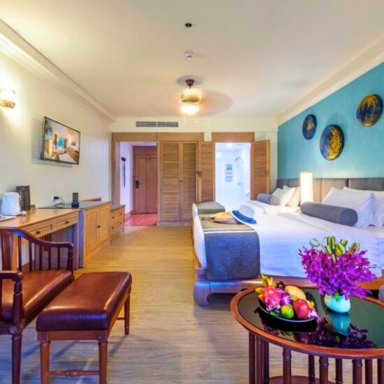 Nestled in the heart of Ao Nang, Sea Seeker Krabi Resort offers a harmonious blend of modern comfort and natural beauty. This 4-star family-friendly resort provides guests with panoramic views of the iconic limestone cliffs and the serene Andaman Sea, creating an idyllic backdrop for a memorable vacation. The resort’s contemporary design is infused with elements inspired by its coastal surroundings, ensuring a tranquil and immersive experience for visitors. The resort has elegantly designed rooms, each room is made to cater to the diverse needs of travelers. Guests can choose from a variety of room categories. Each room features modern amenities such as air conditioning, free Wi-Fi, flat-screen TVs, and private balconies or terraces that offer stunning vistas of the surrounding landscape. Beyond the rooms, guests can indulge in a range of world-class facilities. Take a refreshing dip in the outdoor swimming pool with a dedicated children’s area. Enjoy a rejuvenating spa treatment at Hapuna Spa, or sip on a handcrafted cocktail at the Aloha Pool Bar. The resort’s signature restaurant, KAZE’, serves a delectable mix of Thai and international cuisine, satisfying every palate. For families, a kids’ club keeps younger guests entertained, while adventure seekers can arrange excursions to explore Krabi’s natural wonders.The Facilities