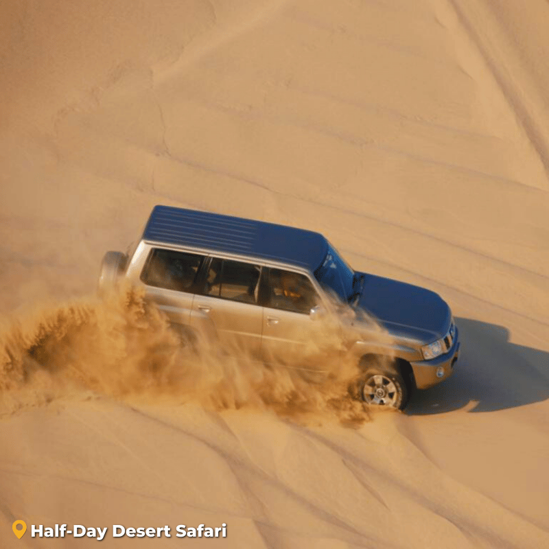 - Half Day Desert Safari: Experience the thrill of the Qatari desert in a luxury 4×4 SUV as you drive across sweeping sand dunes just outside Doha towards the breathtaking Inland Sea. This exhilarating off-road adventure takes you up and down towering dunes, offering a rollercoaster-style ride through one of Qatar’s most iconic natural landscapes. An essential experience for any visit to the country.