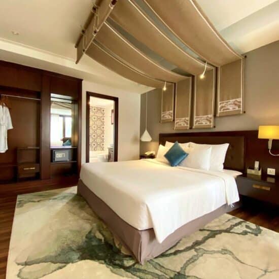 The Odys Boutique Hotel celebrates the beauty of Vietnam by showcasing the national lotus flower in its design. They aim to offer top-quality hospitality using sturdy cedar-wood furniture reminiscent of Vietnam’s traditional wooden homes. The interiors and lighting draw inspiration from both Vietnamese and Western houses, creating a cozy and familiar atmosphere for their guests.