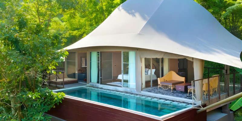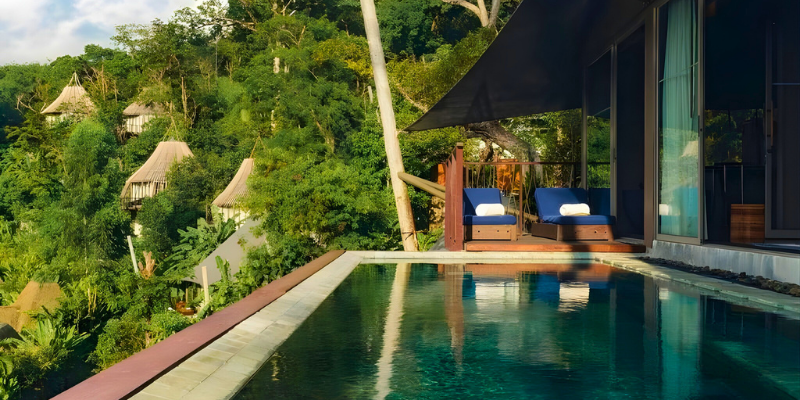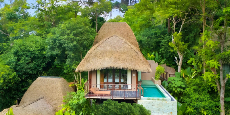 - Private pool villas with sea & jungle views