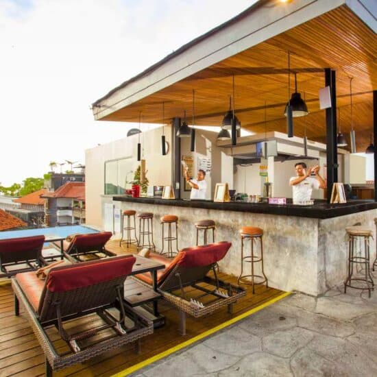 Welcome to SEVN Legian Hotel, your ultimate chill-out spot in Bali! The hotel is just a stone's throw away from the beach, and the laid-back atmosphere is perfect for those seeking a relaxed getaway. Hungry? The restaurant has got you covered! Whether you're craving a hearty breakfast, a tasty lunch, or a delicious dinner, they've got an array of international and Indonesian dishes to tickle your taste buds. Plus, their all-day menu means you can munch on snacks and sip cocktails whenever the mood strikes! But wait, it gets even better! Head up to their rooftop haven, Wander, for some serious relaxation. With an infinity pool and sweeping views of the ocean, it's the ultimate spot to unwind. Grab a drink, lounge on a sunbed, and watch the sun sink below the horizon in true Bali style. Feeling a bit tense? Treat yourself to some pampering at Chayana Massage Center. The skilled therapists are experts in relaxation, offering a range of massages, reflexology treatments, and more. It's the perfect way to rejuvenate your body and soul after a day of exploring.The Facilities