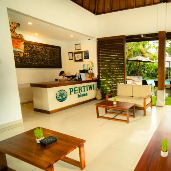 Pertiwi Bisma offers a peaceful escape just moments from the heart of Ubud. Located on strategic Bisma Street—often called the cultural heartbeat of Ubud, this property is part of the renowned Pertiwi Resort & Spa group. With lush surroundings and views of tranquil rice terraces, it’s an ideal choice for those seeking a relaxing stay close to Ubud Centre.