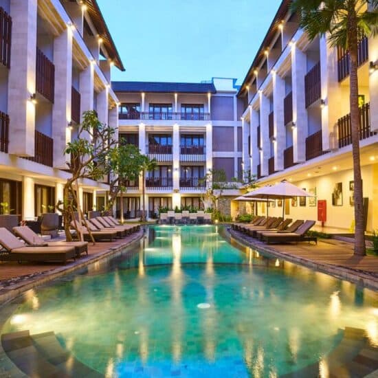 The Grand La Walon offers a refreshing stay with an inviting outdoor pool, tranquil garden, and rejuvenating spa facilities. You’ll find plenty of restaurants and convenience stores just steps away, and the famous Kuta Beach is only a 5-minute stroll. With easy access to the tourist hub, it’s the perfect base for travellers who love vibrant culture, shopping, and an energetic nightlife.