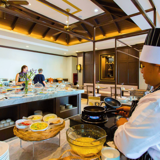 In the heart of cosmopolitan Bangkok, close to the city’s famous shopping and nightlife, and in the vicinity of the renowned Chao Phraya River, Oakwood Hotel & Residence is the ideal mix of a luxury hotel that also has the familiar comforts of home. The hotel’s casual and convivial all-day dining restaurant TrEat, serves delicious local and international cuisines, from buffet style breakfasts to a la carte favorites to please everyone!