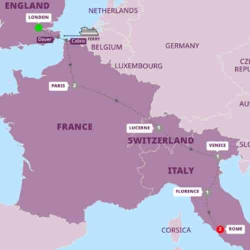 London, Paris, Lucerne, Venice, Florence, Rome, Vatican City