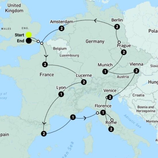 England, France, Switzerland, Spain, Monaco, Italy, Vatican City, Austria, Germany, Czech Republic, Netherlands