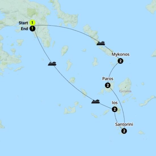 You’ll be living your best Greek island life on this sun, sea & culture-rich trip in Mykonos, Paros, Santorini, Ios & Athens. Stopping in at each of Greece’s most popular islands, the perfect spot for buzzing party nights and lazy sun-soaked days, you’ll have plenty of time to explore charming villages, local shops, volcanoes, natural coves & sun-soaked beaches, with plenty of time for sunbathing, swimming & nightlife as well as a bit of ancient history in between.