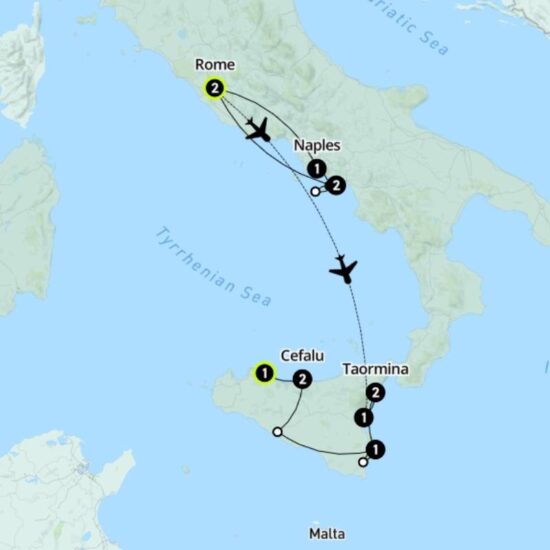On this perfectly balanced escapade, we’ll wander wide-eyed from Pompeii to Sicily – ticking Naples, the Amalfi Coast and Rome off our bucket lists along the way. With world-famous architecture, world-renowned cuisine and a world-beating group of 27-35s to enjoy it all with, this is one limoncillo-scented adventure you won’t go forgetting in a hurry.
