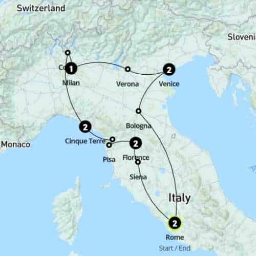 Milan, Venice, Rome, Florence, Pisa, Siena
