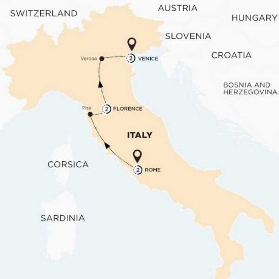 You could spend an eternity exploring the enchanting Italian capitals of Venice, Florence and Rome, but this exciting 7-day journey will deliver a multitude of memorable experiences that will linger long after you’ve returned home. Take a walk down memory lane – one that spans centuries of tradition, heritage and culture, as you encounter such iconic sights as the mighty Colosseum, the Leaning Tower of Pisa and Florence’s spectacular Duomo. Your exploration of this veritable open-air museum will leave you enriched and inspired.