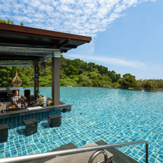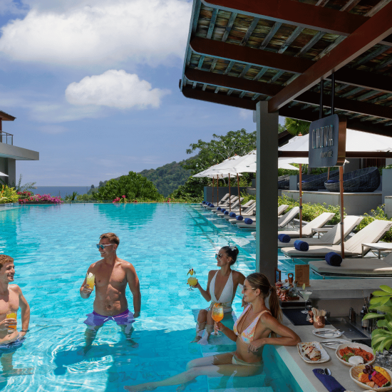 Perched above lush mountain forests with breathtaking Andaman Sea views, Avista Hideaway offers a tranquil escape near Patong Beach. The resort features Thai-inspired rooms and suites, surrounded by lush gardens and three stunning pools with swim-up bars.