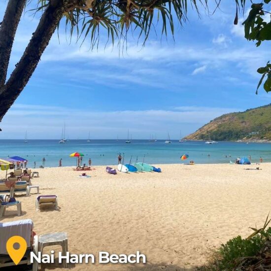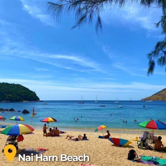 Relax on this stunning soft white sand beach tucked between green hills & a couple tiny islands in the very south of Phuket. Nai Harn has stunning clear blue water making it one of the most beautiful beaches in Phuket. The beach is surrounded by jungle-and-palm covered mountains with a large freshwater lagoon inland. Rarely overcrowded, even in high season, Nai Harn Beach attracts both Thais and expats for its peaceful and unspoiled character.