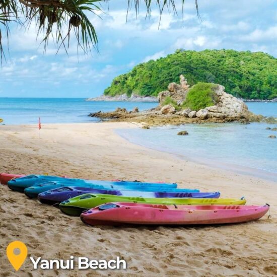 Yanui Beach is a charming tiny bay tucked in a cove between Windmill Viewpoint & the famous Promthep Cape in the very south of Phuket. Relax & chill on this secret, small tree-lined sandy beach. Snorkel, Kayak, or try out a stand-up paddle board while experiencing this breath-taking little spot!