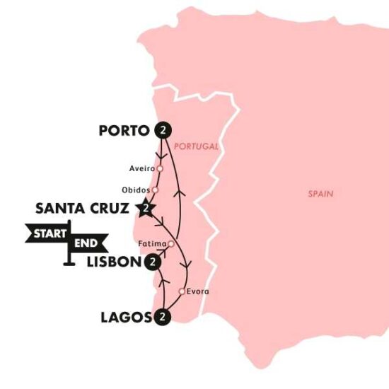 Experience 1 country (11 stops) in 8 days! A new type of trip drenched in sun and packed with wellness vibes, this one’s designed to dive deep into the unique beauty and culture of Portugal. Journeying from Lisbon to Porto, via a stop at a beach-side yoga and surf camp, this trip hits iconic destinations, uncovers Portuguese culture & soaks up the good vibes and free spirit of surf culture across the azure shores of Portugal’s beautiful coastlines.