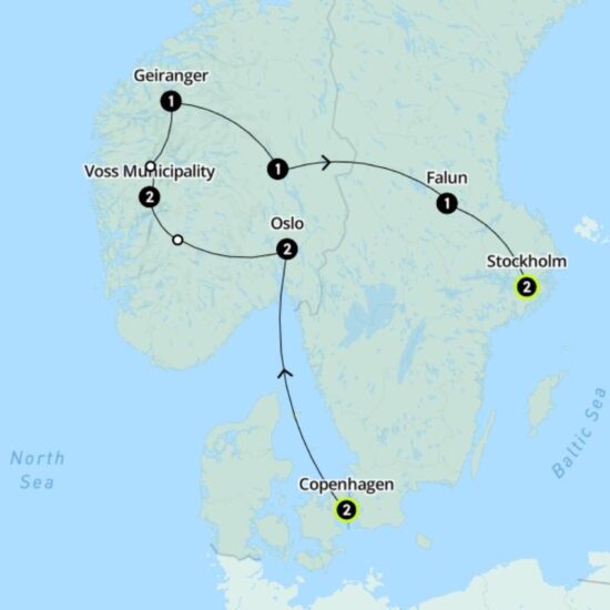 From colourful Copenhagen to sophisticated Stockholm, this trip gives you 12 days of pure Scandinavian magic. Expect fresh air, fairytale forests, fresh seafood, hot saunas, jaw-dropping fjords and enough natural beauty and cultural heritage to take your breath away. Get the pulse racing in Voss, gawp at the Geiranger Fjord and meet some Alaskan Huskies in Dalarna – and that’s just for starters.