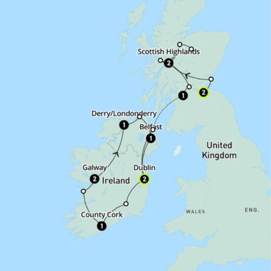 Welcome to the ultimate Scottish and Irish adventure, where you’ll find warm locals, trendy cities and breathtaking scenery everywhere you turn. On this trip you’ll see highlands, bagpipes & whisky go head to head with Irish folk songs & Guinness: it’s impossible to choose a favourite, which is why you need to do them both. And with heaps of eye-widening travel inclusions like Blarney Castle and a cruise around Loch Ness, there’s no better way than this 13-day journey, starting in Edinburgh and finishing off in Dublin.