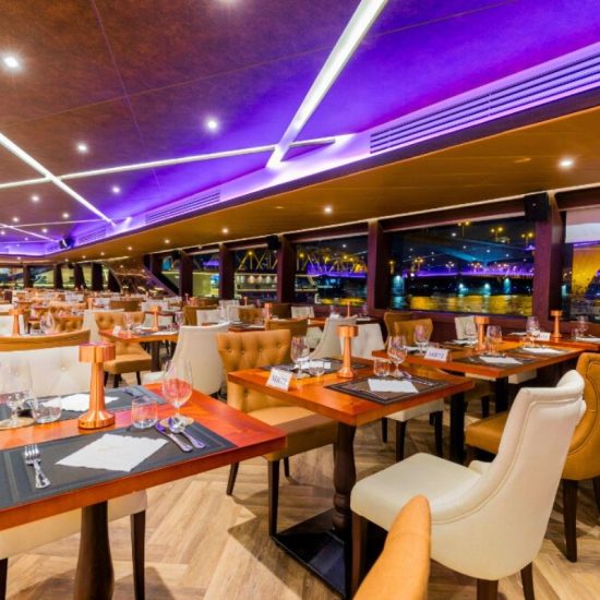 As you enjoy your meal, let the gentle river breeze carry you away, and watch the city’s landmarks light up in the distance.