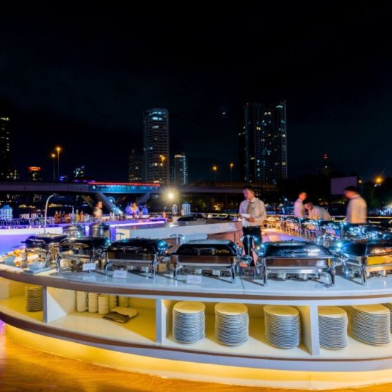 From the moment you step aboard, you’ll be treated to an unforgettable dining experience, with a lavish selection of Thai cuisine, an international buffet, fresh seafood, and an exquisite array of desserts and fruits.