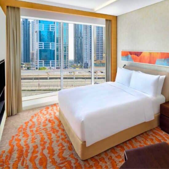 Welcome to the 5 Star Crowne Plaza Dubai Marina, where sophistication meets convenience in the heart of the bustling Dubai Marina area! Situated right next to Dubai Marina Mall and with direct access to the lively Marina pedestrian promenade, you’re in for a treat with vibrant cafes and restaurants right at your fingertips. With stylish rooms, offering stunning views of Dubai Marina, this hotel is the perfect blend of comfort and luxury. But it’s not just about the prime location – Crowne Plaza Dubai Marina goes above & beyond to pamper its guests. Picture yourself unwinding in the premium club lounge, with floor-to-ceiling windows offering breathtaking marina views and gourmet treats to tantalize your taste buds. And when hunger strikes, indulge in a variety of dining experiences at one of their five restaurants, including a specialty Thai restaurant and all-day dining options.