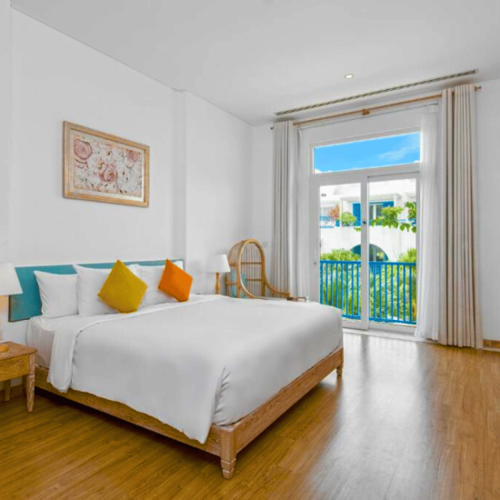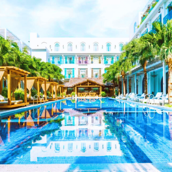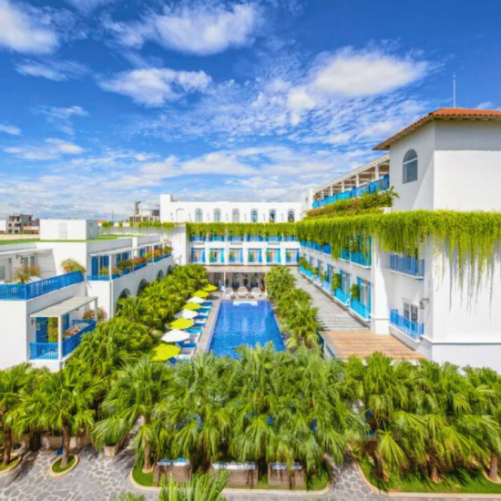 Inspired by the iconic beauty of Santorini, Risemount Premier Resort Danang blends Mediterranean charm with Vietnamese warmth. Its white-and-blue design, open airy spaces, and rooftop pool create a serene coastal escape just minutes from the beach, offering guests a unique Santorini-style stay in the heart of Da Nang.