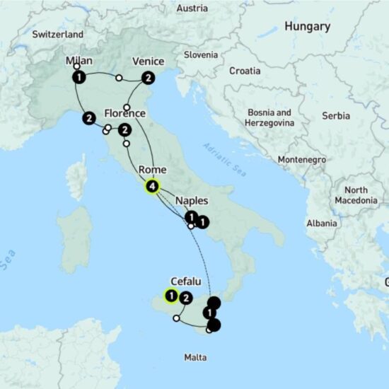 We’ve been visiting Italy for decades, but it’s fair to say we’ve never put together an adventure quite like this. From Rome this one glides through Renaissance Florence and the glitzy Riviera, with cooking classes and historical monuments galore along the way. Then onto Naples and Pompeii, for a feast of pizza and Roman history, before hitting up the incomparable Amalfi coast. After cruising around some dazzling isles and visiting some lemon groves, we’ll head back to Rome. But we’re not done yet – not even close. Sicily beckons, with its valleys of ancient archaeological wonders, volcanoes to explore, coastal towns to fall in love with and all of the heavenly carbs we can fit in. After a full week on this paradise island, we’ll be head-over-heels for absolutely everything Italian. It’s called Ultimate Italy for a reason.