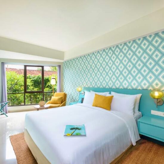 Right on Kuta Beach, Mamaka by Ovolo is a vibrant urban resort made for foodies, surfers and social travellers. Set in the heart of Kuta-Legian, the hotel offers stylish rooms with AC, Smart TVs, high-speed WiFi, and comfy seating areas with epic views.
