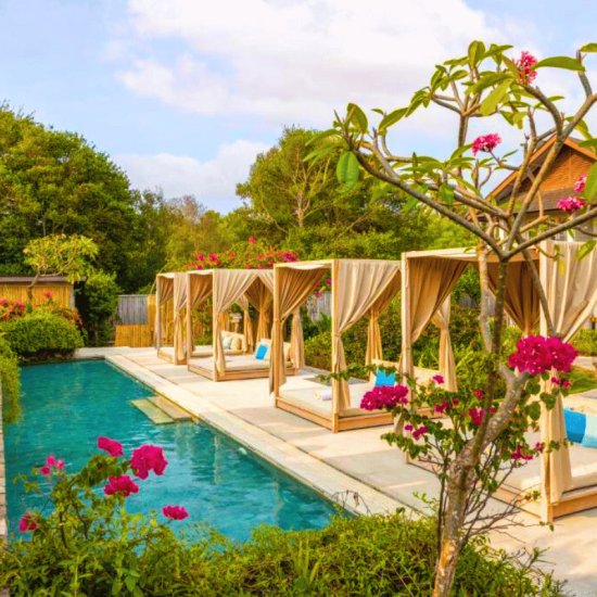 Located Beachfront on Legian surrounded by tropical gardens and a starlit pool, the resort is truly a paradise destination. Wake up to the sound of the ocean in your super comfy bed, surrounded by exotic wooden furniture, and tropical Balinese designs.